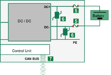 6.CAN 總線-ESD 和瞬變保護。OBC 通過 CAN 總線與BMS 等其他系統(tǒng)進行通信。在密集封裝的環(huán)境下,CAN 線路經(jīng)常會受到 ESD(例如在裝配和維護過程中)的過電壓應(yīng)力和由其他汽車系統(tǒng)通過感應(yīng)耦合或傳導(dǎo)耦合引起的瞬變的影響。