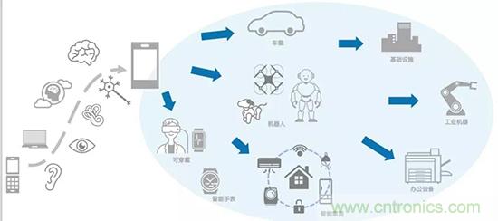 他指出按照這個原理疊加,如果再疊加人的肌肉----類似一些電機控制執行器件,就形成了機器人的概念,再把低功耗小型化智能運用就形成IOT物聯網概念,隨著技術的在進步,智慧手機會超越了手機行業的范疇,逐步進入到各個其他領域。如車載、機器人、穿戴設備,給其他周邊設備、周邊行業等,帶來革命性的產品形態變化。