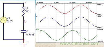 電容器實際上起到一個限制電流和動態(tài)分配電容器和負載兩端電壓的角色。
