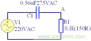 阻容降壓電路可以等效為由降壓電容C1和負載電阻R1組成,電阻和電容串聯(lián)分壓。