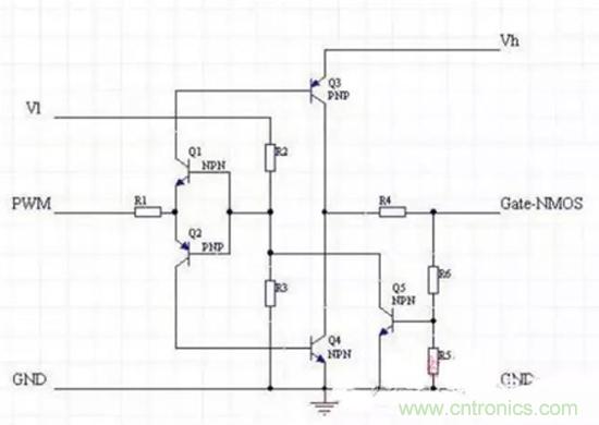 當使用5V電源,這時候如果使用傳統的圖騰柱結構,由于三極管的be有0.7V左右的壓降,導致實際最終加在gate上的電壓只有4.3V。這時候,我們選用標稱gate電壓4.5V的MOS管就存在一定的風險。