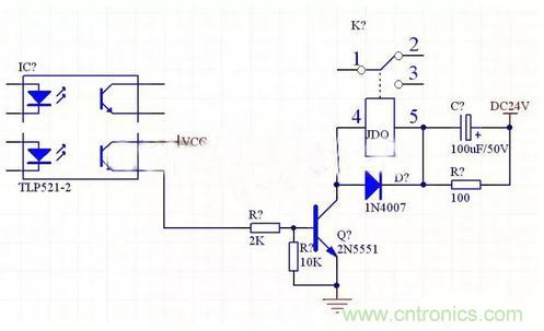 當2003輸入端為高電平時,對應的輸出口輸出低電平,繼電器線圈兩端通電,繼電器觸點吸合;