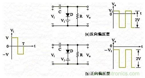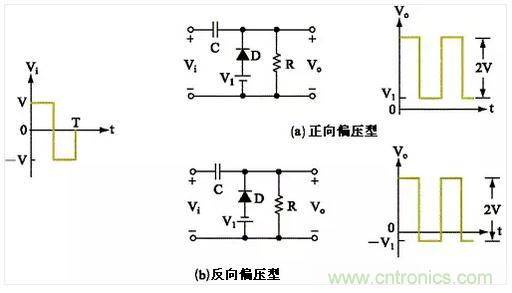【導(dǎo)讀】所謂鉗位,就是把輸入電壓變成峰值鉗制在某一預(yù)定的電平上的輸出電壓,而不改變信號。鉗位電路的功能:將輸入訊號的位準予以上移或下移,并不改變輸入訊號的波形。