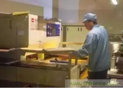 在覆銅板表面會涂一層感光液體,經過80度的溫試烤干,再用菲林貼在PCB板上,再經過紫外線曝光機曝光,撕下菲林。
