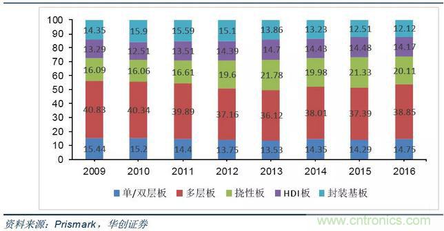 在計算機應用領域,PCB產值占比由2009年的32%逐步下降至2016年的27%。主要由于計算機產業今年來增長逐步放緩;