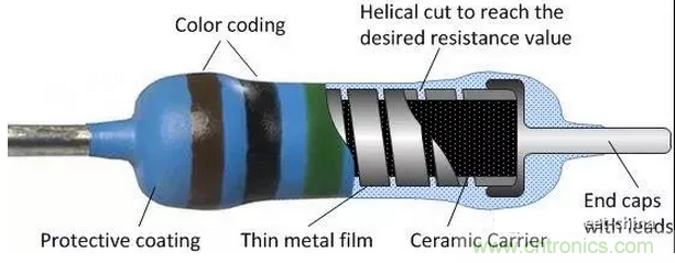 軸線引線電阻通常都是圓柱形,兩個外電極是圓柱體兩端的軸向導線,根據材料和工藝的不同還可以再分為多種。