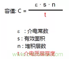 由公式可以看出,容值的大小和介電常數,有效面積,電介質厚度,堆積層數有關。介電常數越高有效面積越大極板厚度越小堆積層數越多,容值越大。