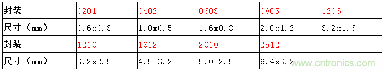 通過測量電阻體積的大小對應相應的封裝: