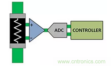 電阻器。該電阻通常稱為分流器,會(huì)在兩端產(chǎn)生一個(gè)與通過它的電流成比例的電壓。由于分流電阻器不應(yīng)該顯著影響電流,所以它通常非常小,阻值為毫歐級(jí)或不到一毫歐 (mΩ)。分流電阻器兩端產(chǎn)生的電壓因此也非常小,在被ADC轉(zhuǎn)換之前通常需要放大。