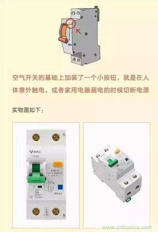漏電斷路器是在空氣開關的基礎上添加的一個小按鈕,當發(fā)生意外漏電的時候,會引發(fā)開關自動切斷電源。