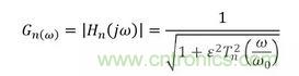 其中ω0是截止頻率;Tn是n階切比雪夫多項式