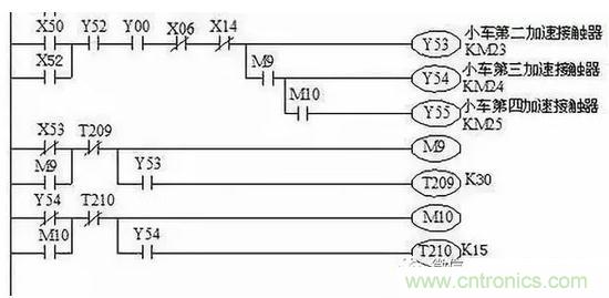 根據主電路中控制負載的控制電器的主觸點文字符號,在PLC的I/O接線圖中找出控制該負載的接觸器線圈的輸出繼電器,再在梯形圖和指令語句表中找出控制該輸出繼電器的線圈及其相關電路,這就是控制該負載的局部電路。