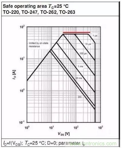 此部分為MOSFET的最大脈沖電流限制,此最大電流對應ID_pulse.