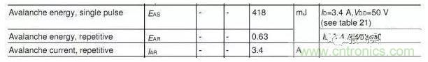 EAS:單次雪崩能量,EAR:重復雪崩能量,IAR:重復雪崩電流