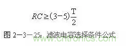 電容濾波電路圖見圖2-3-23,電容濾波電路是利用電容的充放電原理達到濾波的作用。在脈動直流波形的上升段,電容C1充電,由于充電時間常數很小,所以充電速度很快;在脈動直流波形的下降段,電容C1放電,由于放電時間常數很大,所以放電速度很慢。在C1還沒有完全放電時再次開始進行充電。這樣通過電容C1的反復充放電實現了濾波作用。濾波電容C1兩端的電壓波形見圖2-3-24(b)。