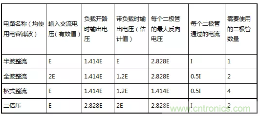 注:U為負載兩端電壓值;I為負載上電流值;e為整流二極管壓降,一般取0.7V。