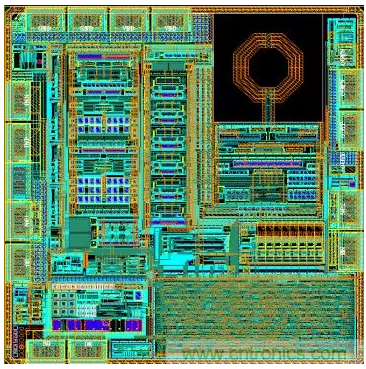 射頻無線模塊或者獨立的射頻芯片,從電路設(shè)計到版圖設(shè)計,完全屬于全定制設(shè)計方式。設(shè)計人員在標準版圖設(shè)計和半定制版圖設(shè)計的基礎(chǔ)上,不斷開發(fā)出專用的芯片射頻產(chǎn)品。圖6為某射頻公司自行設(shè)計的5GHz通信產(chǎn)品全定制版圖案例,即版圖為全手工設(shè)計,芯片制造采用180nm射頻工藝,其數(shù)據(jù)率達到5Gbps。