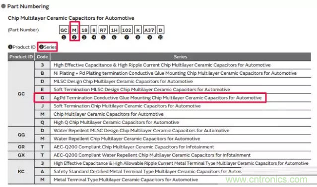 對于Murata(村田)的汽車級GCx系列的電容來說,環氧樹脂安裝的電容以零件編號中的第三個字母"G"表示,但這個選項沒有提到"環氧樹脂"一詞。