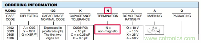 對于Vishay(威世)的VJ系列的電容器,有兩種不同的零件編號方案需要注意——老的和停產的零件編號方案將環氧樹脂安裝選項指定為“N”選項。