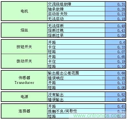 【導讀】以下總結(jié)摘錄MIL-HDBK-338B,美軍可靠性設計手冊來為FTA(故障樹)做一些支持。如果我們想要進行FTA的定量分析,一定要把可靠性預測先做完,在可靠性前一定要把電壓分布表和溫度分布先進行初步的運算,通過下面的的表格,大概可以預計失效發(fā)生的時候故障的分配比例。