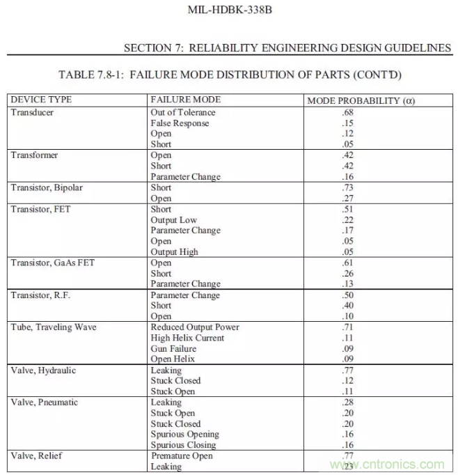 以下數(shù)字僅供參考,本身MIL-HDBK-338B是一份指導書性質(zhì)的,所有的數(shù)字僅僅具有參考意義。