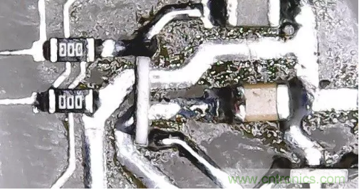 這說明電阻的溫度也急劇增加,導致功耗也大幅度增加。0603電阻在電流增加到11.5A時燒毀,0805電阻在電流增加到12A時燒斷,1206的電阻在12A時沒有燒毀。