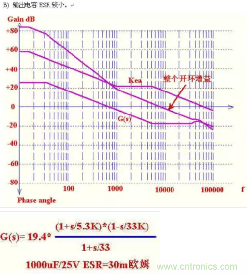 輸出濾波電容的內阻比較大,自身阻容形成的零點比較高,這樣在8K處的相位滯后比較大.