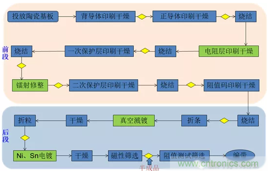 【制造方式】阻值碼油墨印刷 烘干 燒結
