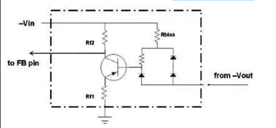 在使用低側(cè) FET 升壓 IC 實(shí)現(xiàn)的負(fù)降壓應(yīng)用中,輸出 (-Vout) 及其任何分壓樣本仍然以系統(tǒng)接地為參考。然而,由于 IC 接地引腳連接到 -Vin 而不是系統(tǒng)接地,因此 IC 將無法正確讀取 FB 電壓(也不會正確保持調(diào)節(jié)),因此需要轉(zhuǎn)換該電壓,使其以 IC 接地引腳為參考。