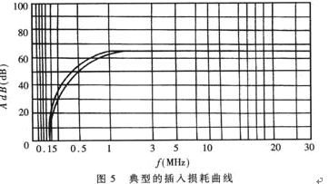 插入損耗用分貝(dB)表示,分貝值愈大,說明抑制噪聲干擾的能力愈強。鑒于理論計算比較煩瑣且誤差較大,通常是由生產廠家進行實際測量,根據噪聲頻譜逐點測出所對應的插入損耗,然后繪出典型的插入損耗曲線,提供給用戶。