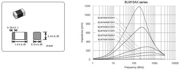 此次通過開發新材料和改進加工工藝,村田成功開發生產出了小型低直流電阻產品,0402尺寸的片狀鐵氧體磁珠BLM15AX系列,與之前的產品相比降低了60%。從而此系列產品節省了小型便攜式設備電路的耗電,使電池壽命得到了延長。在此要介紹的就是這款新型的片狀鐵氧體磁珠BLM15AX系列。