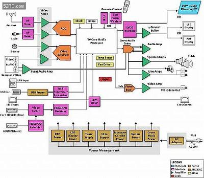 ■VideoDecoder:傳統(tǒng)NTSC/PAL/SECAM等TV信號(hào)采取復(fù)合波形輸入,VideoDecoder內(nèi)含梳形濾波器(Combfilter)功能,可以將復(fù)合端子(Composite、CVBS)、S端子或色差端子(YpbPr/YUV)所輸入的模擬信號(hào)分離,內(nèi)含多組ADC將它轉(zhuǎn)換為數(shù)字信號(hào)。