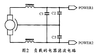 小家電中的負載包括線性負載(如熱水器,等)和非線性負載(豆漿機,絞肉機等)。由于非線性負載為頻普極寬的干擾源。因此,對于以上干擾,特別是非線性負載的干擾,其抑制方法主要有兩種一是從非線性負載(如電機)本身入手。因為不恰當的操作\接觸器的接觸不良\炭刷不干凈等,都會產生數倍于正常運轉時的干擾情況,為了減少干擾,就應當保證接觸器的接觸可靠、開\合動作的正常和觸頭的壓力,而且還要保持炭刷和換向器的干凈,還應保證炭刷本身的質量和換向器的光潔度;同時還要保護炭刷對換向器有適當的壓力;最后還要使機座的固定可靠,避免機械運轉時引起的運轉不穩。其二則是采用必要的電氣濾波方式,其電路連接如圖2所示。