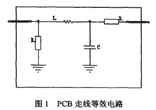 信號完整性主要有反射、振鈴、地彈和串擾等現象。PCB板上的走線可等效為圖1所示的串聯和并聯的電容、電阻和電感結構。串聯電阻的典型值0.25D./R-4)。55DJft,并聯電阻阻值通常很高。將寄生電阻、電容和電感加到實際的PCB連線中之后,連線上的最終阻抗稱為特征阻抗zo。