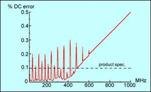 進行穩定度及線性測試時,在輸入端注入小的但上升沿極陡 (《1ns) 的方波信號(也可以通過電容饋送到輸出端和電源端),方波的基頻必須在電路預期的頻帶內,電路輸出應用100MHz(至少)的示波器和探針進行過沖擊和振鈴檢查,對音頻或儀表電路也應如此,對更高速模擬電路,要選取頻帶更寬的示波器,同時注意使用探頭的技巧。