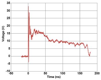 安森美半導體的ESD鉗位性能備受業界推崇,鉗位性能可從幾種方法觀察和量化。使用幾個標準工具即可測量獨立ESD保護器件或集成器件的ESD鉗位能力,包括ESD保護功能。第一個工具是ESD IEC61000-4-2 ESD脈沖響應截圖,顯示的是隨時間推移的鉗位電壓響應,可以看出ESD事件中下游器件的情形。