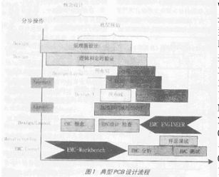 以往的電子電路設計,工程師們多是憑借多年的開發經驗在PCB制成后,在硬件調試或電子設備的整機調試過程中解決EMC的問題,這顯然是一種定性不定量的、不可靠、不精確的方法。進入90年代以來,電子產品向著低功耗、低電磁輻射,小型化和輕型化的方向發展,而且要求能在復雜惡劣的環境中工作,為了盡量縮短產品的開發周期,工程師們不得不另辟新徑。更理想的PCB設計流程如圖1所示,在PCB設計的布局和布線階段加入EMC/EMI的準則。例如為了減少并行信號走線間的相互串擾,可以為為規定線線之間的距離不能小于一定的值。為了減少信號的反射,使輸入輸出阻抗匹配,避免出現振鈴現象,可以規定布線網絡的幾何拓撲結構,走線的長度,甚至于在信號的驅動端事輸出端端接阻容器件(常用的方法有串接電阻,并接上拉、下拉或上下接電阻,也可采用箝位二極管等方法)。在PCB布局布線結束后,在制作實際電路板之前對電路設計進行EMC/EMI的分析和模擬仿真。同時依據實際電路的動態工作頻率分析信號的強度、時延等特性。如果設計的PCB中含有與外部的接口,IC上外加了散熱器或電路本身功耗大時,必須進一步進行電磁輻射的模擬仿真分析。對于高速電路有必要進行布線網絡的TALC傳輸線分布參數分析。新加入的這些設計階段的步驟,實際上是把以前硬件調試的一些工作提前到計算機的設計平臺上來完成,其優越性是顯而易見的。因為有IBIS和SPICE等數據庫的支持,以往EMC/EMI不定量的捉摸不定的分析變為精確的與實測差別細微的計算結果,設計者根據模擬仿真的結果可以避免產品電磁兼容性差的弊病。