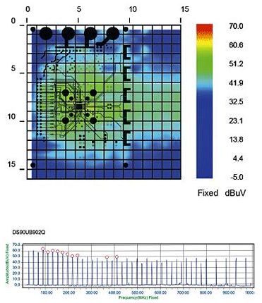 在任何新PCB的開發過程中,設計工程師都必須找出設計之外的輻射體或射頻泄漏,并對其進行描述和處理以通過一致性測試??赡艿妮椛潴w包括高速、大功率器件以及具有高密度或高復雜度的器件。掃描系統以疊加在Gerber文件上的形式顯示空間輻射特性,因此測試人員可以準確地找出所有輻射問題的來源。設計工程師可以在采取了相應的解決措施之后,對器件進行重新測試并立即量化出校正設計后的效果。