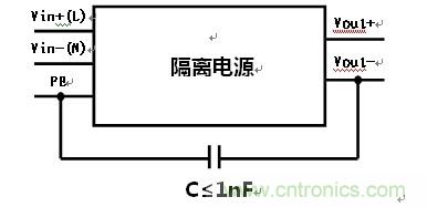 那么,如果隔離電源在應用過程中一定要進行輸出Vout-連接到PE端,可以按照上圖的連接思路,通過電容將這兩個端子進行連接,這樣設計保證了客戶特殊使用要求的同事,對于上述問題也能夠有效的規避。