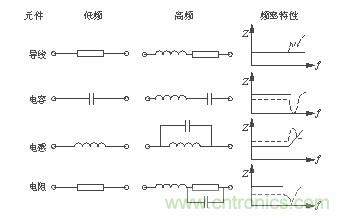 如圖4所示,在高頻工作下的元件都有高頻寄生特性[2],對其工作狀態產生影響。高頻工作時導線變成了發射線、電容變成了電感、電感變成了電容、電阻變成了共振電路。觀察圖4中的頻率特性曲線可以發現,當頻率過高時各元件的頻率特性產生了相當大的變化。為了保證開關電源在高頻工作時的穩定性,設計開關電源時要充分考慮元件在高頻工作時的特性,選擇使用高頻特性比較好的元件。另外,在高頻時,導線寄生電感的感抗顯著增加,由于電感的不可控性,最終使其變成一根發射線。也就成為了開關電源中的輻射干擾源。