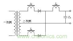 輸出整流二極管的反向恢復問題可以通過在輸出整流管上串聯一個飽和電感來抑制,如圖5所示,飽和電感Ls與二極管串聯工作。飽和電感的磁芯是用具有矩形 BH曲線的磁性材料制成的。同磁放大器使用的材料一樣,這種磁芯做的電感有很高的磁導率,該種磁芯在BH曲線上擁有一段接近垂直的線性區并很容易進入飽和。實際使用中,在輸出整流二極管導通時,使飽和電感工作在飽和狀態下,相當于一段導線;當二極管關斷反向恢復時,使飽和電感工作在電感特性狀態下,阻礙了反向恢復電流的大幅度變化,從而抑制了它對外部的干擾。