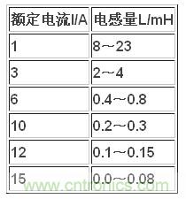 表1 電感量范圍與額定電流的關系[4]
