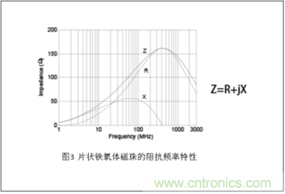一般來(lái)說(shuō),片狀鐵氧體磁珠是以100MHz的阻抗值來(lái)決定其規(guī)格的。但與此同時(shí), 也存在著諸多擁有相同阻抗值的不同產(chǎn)品,這是因?yàn)樗鼈兊那€形狀各不相同。圖4所示的就是其中一例。BLM18AG601SN1與 BLM18BD601SN1都是100MHz阻抗值為600Ω的片狀鐵氧體磁珠,但從它們的阻抗波形可以看出,與BLM18AG601SN1較為平穩(wěn)上升 的曲線相比,BLM18BD601SN1的曲線則呈急速上升的趨勢(shì)。