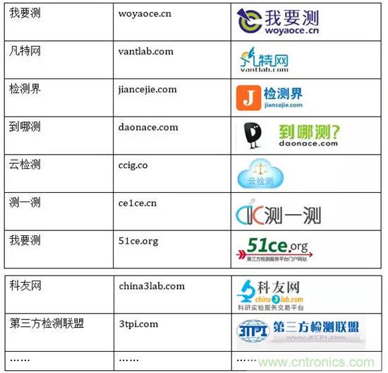 我要測(woyaoce.cn)、凡特網(vantlab.com)、檢測界(jiancejie.com)、到哪測(daonace.com)、云檢測(ccig.co)、測一測(ce1ce.cn)、我要測(51ce.org)、科友網(china3lab.com)、第三方檢測聯盟(3tpi.com)……