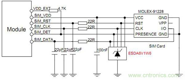 這個模塊集成2個SIM卡,所以推薦一種器件能同時保護6路信號的集成ESD器件。