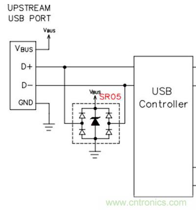 此模塊USB經常用來配置數據,插拔容易被靜電損壞,本方案可以采用分立器件或者集成器件,但要確保選擇的器件結電容小于3PF。