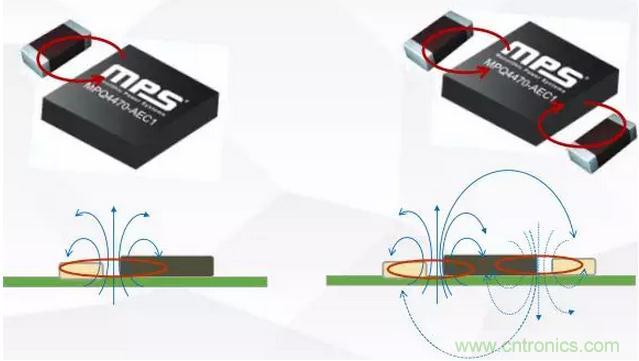 如圖7所示,對(duì)稱電容設(shè)計(jì)能明顯抵消磁場(chǎng),如果電容集成到芯片內(nèi)部的話對(duì)傳導(dǎo)和輻射的高頻干擾都能起到極大的抑制作用,MPS的MPQ4491M就是一款高度集成的車載充電芯片方案,內(nèi)部集成了電容,具有良好的EMI性能。