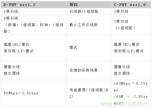D-PHY之后還制定出了M-PHY規格,C-PHY介于D-PHY和M-PHY之間成了標準規格。