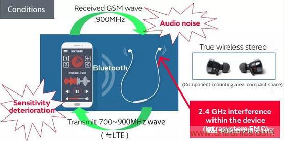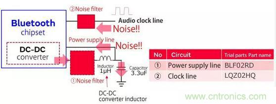 在這種情況下,我們引入了噪聲抑制的示例,其中同一電路中的噪聲干擾藍(lán)牙通信信號(hào)。該技術(shù)還可以應(yīng)用于以2.4 GHz頻率通信的非藍(lán)牙設(shè)備,我們已經(jīng)實(shí)現(xiàn)了噪聲抑制組件,這些組件在2.4 GHz的超小型x 0.4 mm x高頻范圍內(nèi)非常有效考慮到在添加組件時(shí)需要節(jié)省安裝表面積,需要0.2 mm。