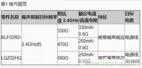 表1和圖6顯示了在這種情況下用于噪聲抑制的BLF02RD和LQZ02HQ濾波器的代表性電氣規(guī)范和插入損耗頻率特性。